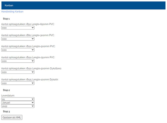 Een Bestel App op basis van html en javascript om een XML bestand te genegeren voor een zaagmachine zodat de spullen voor kanban door een ieder gemakkelijk besteld kan worden.